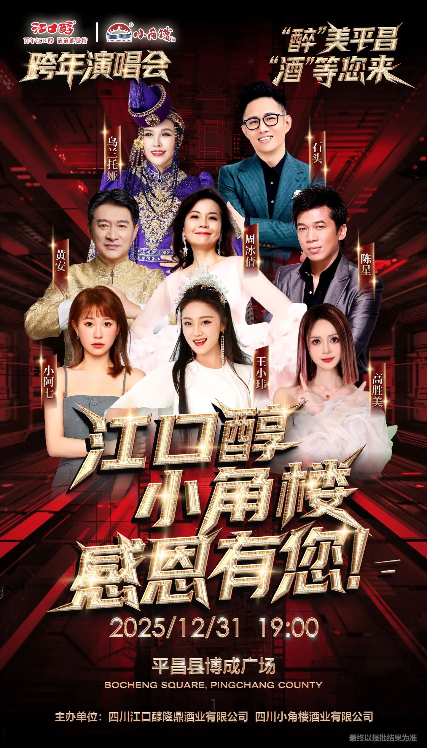 当夜幕降临,通河与巴河的波光将映照不眠的灯火;当年末的钟声即将敲响,满怀的感恩与新的希望亟待诉说。2025年12月31日,“醉美平昌,酒等您来——江口醇·小角楼感恩有您跨年演唱会”将在万众期待中隆重举行。